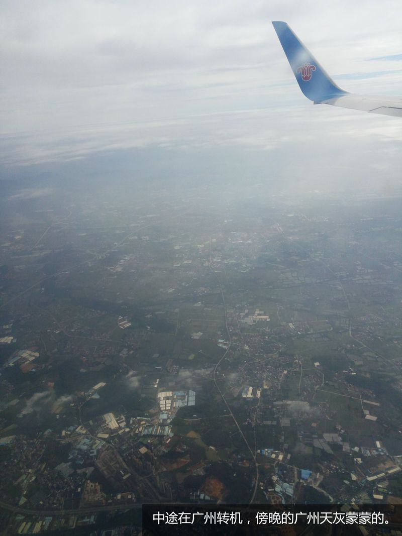 中途在廣州轉機,傍晚的廣州天灰蒙蒙的。