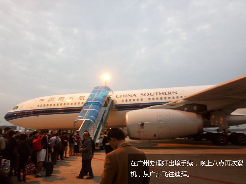 在廣州辦理好出境手續,晚上八點再次登機,從廣州飛往迪拜。