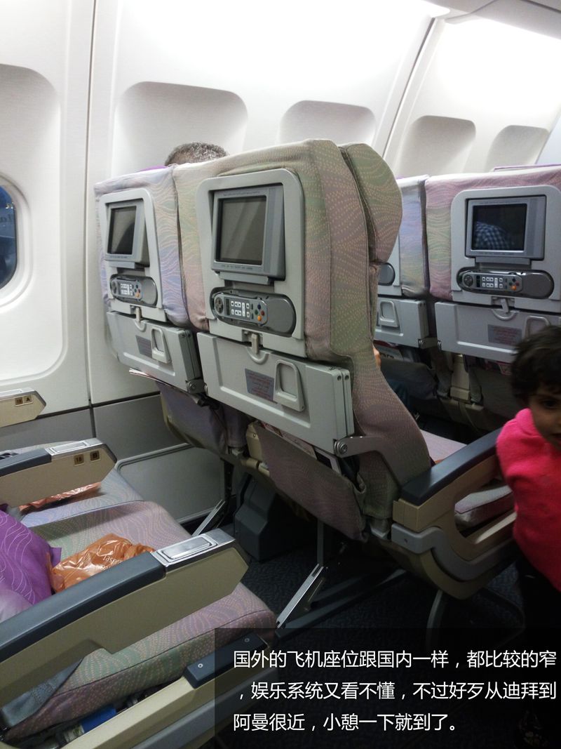 國外的飛機座位跟國內一樣,都比較的窄,娛樂系統又看不懂,不過好歹從迪拜到阿曼很近,小憩一下就到了。
