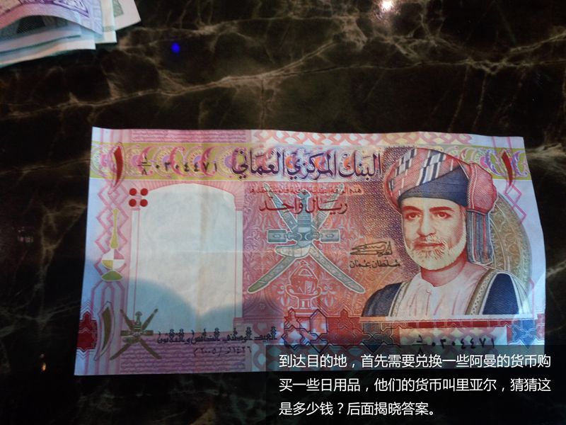 到達目的地,首先需要兌換一些阿曼的貨幣購買一些日用品,他們的貨幣叫里亞爾,猜猜這是多少錢?后面揭曉答案。