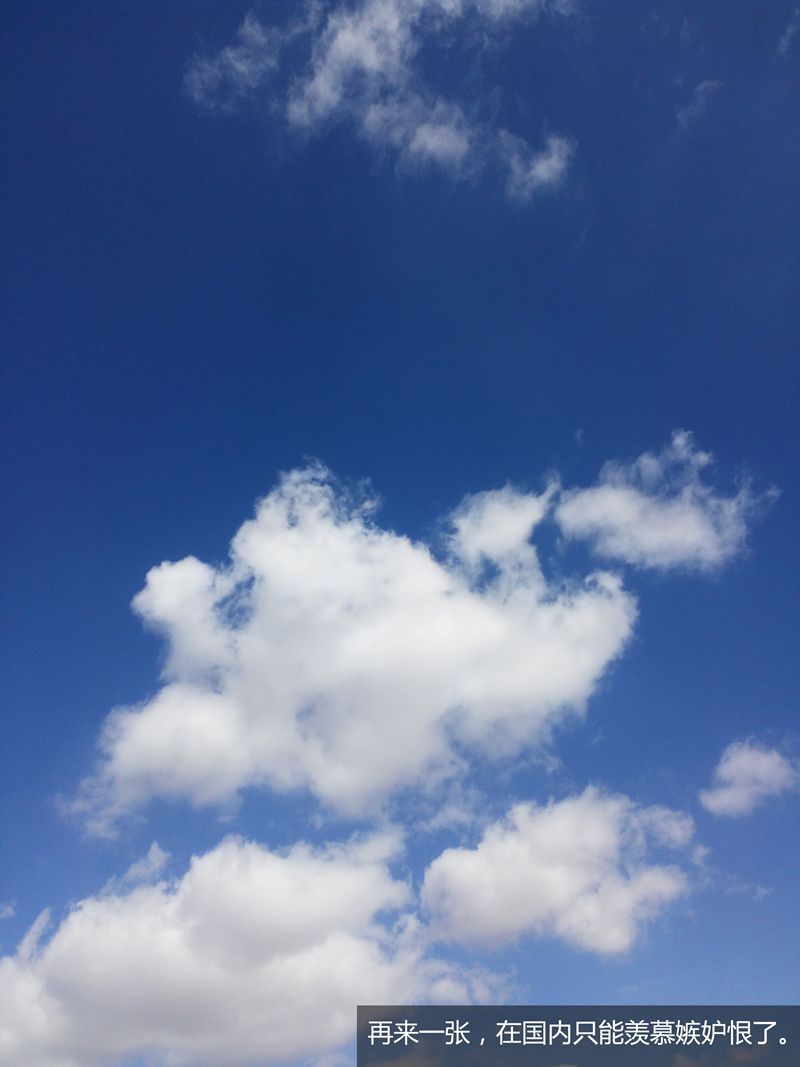看看當地的天空,每天都是藍天白云,很少下雨,空氣質量跟國內比真是一個天,一個地。