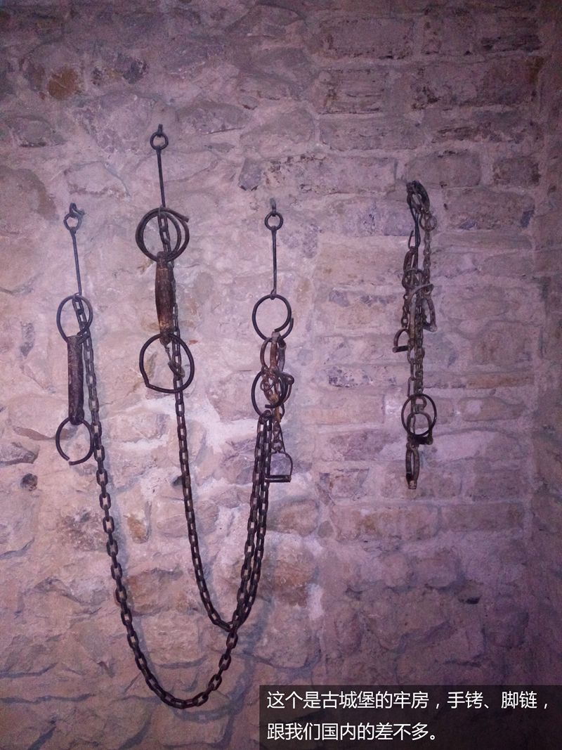 這個是古城堡的牢房,手銬、腳鏈,跟我們國內的差不多。