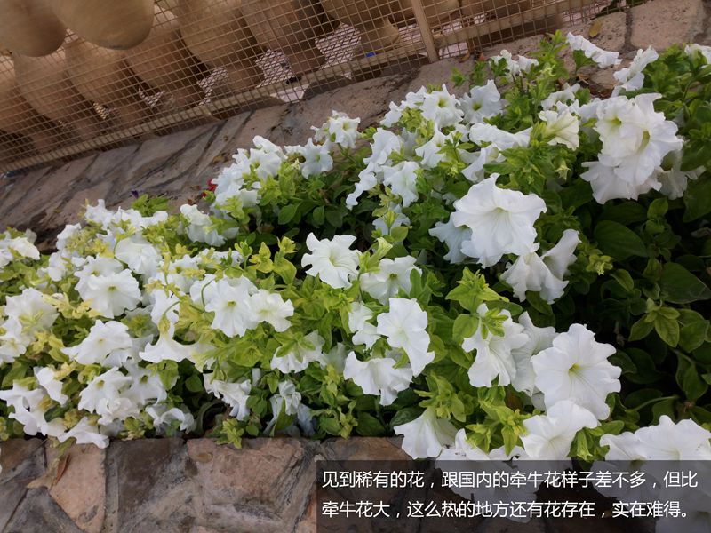 見到稀有的花,跟國內的牽牛花樣子差不多,但比牽牛花大,這么熱的地方還有花存在,實在難得。
