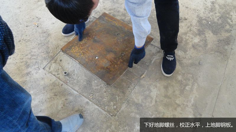 下好地腳螺絲,校正水平,上地腳鋼板。