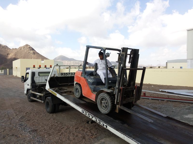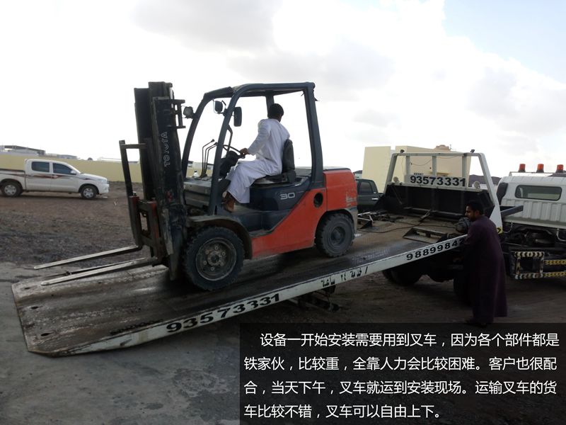 設備一開始安裝需要用到叉車,因為各個部件都是鐵家伙,比較重,全靠人力會比較困難??蛻粢埠芘浜希斕煜挛?,叉車就運到安裝現場。運輸叉車的貨車比較不錯,叉車可以自由上下。