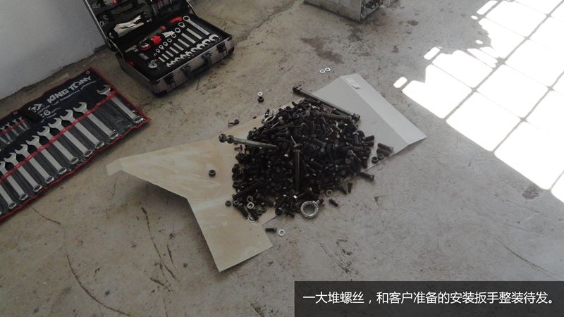 一大堆螺絲,和客戶準備的安裝扳手整裝待發。