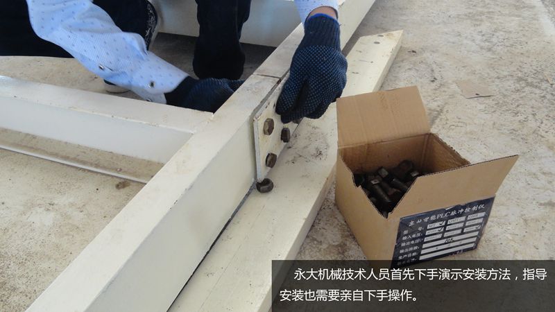 永大機械技術人員首先下手演示安裝方法,指導安裝也需要親自下手操作。