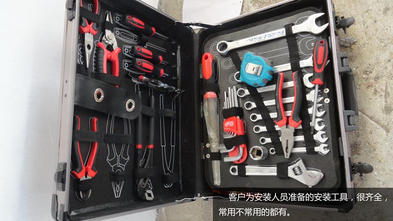 客戶為安裝人員準備的安裝工具,很齊全,常用不常用的都有。