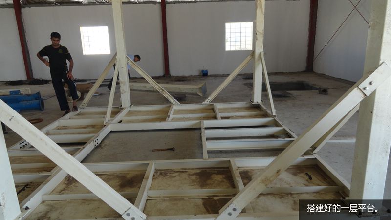一層平臺的框架已經擺放到位,下面就要開始安裝了。