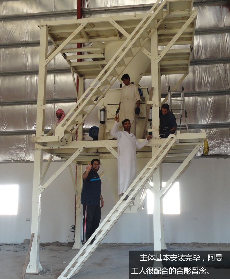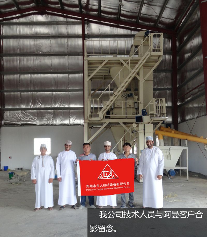 2014年底,阿曼客戶從鄭州永大機械訂購了一套干粉砂漿成套設備,設備經過長途跋涉、漂洋過海順利到達阿曼,而設備到達客戶手中時也正好進入阿曼地區一年當中的熱季,考慮到當地最高氣溫達到四五十度,我們北方人很難適應,跟客戶協商后,等年底阿曼進入涼季后再進行安裝。2015年底,永大機械技術人員正式飛往阿曼,指導安裝干粉砂漿成套設備。