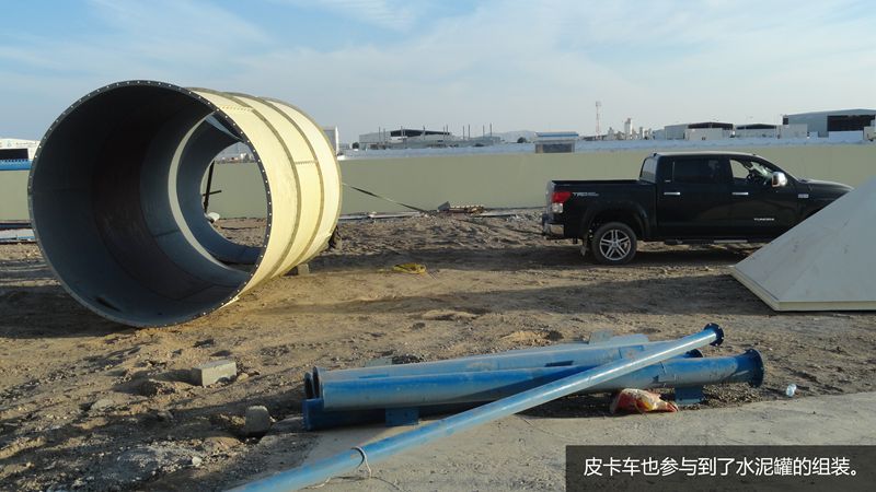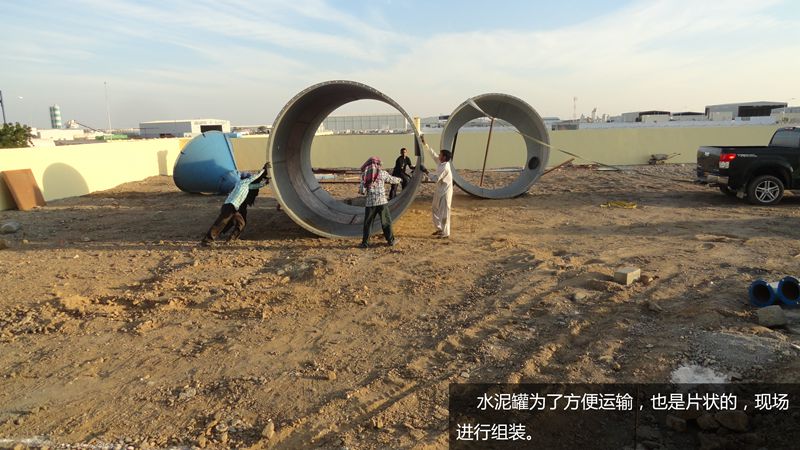 水泥罐為了方便運輸,也是片狀的,現場進行組裝。