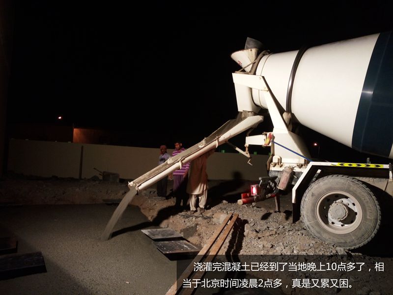 澆灌完混凝土已經到了當地晚上10點多了,相當于北京時間凌晨2點多,真是又累又困。