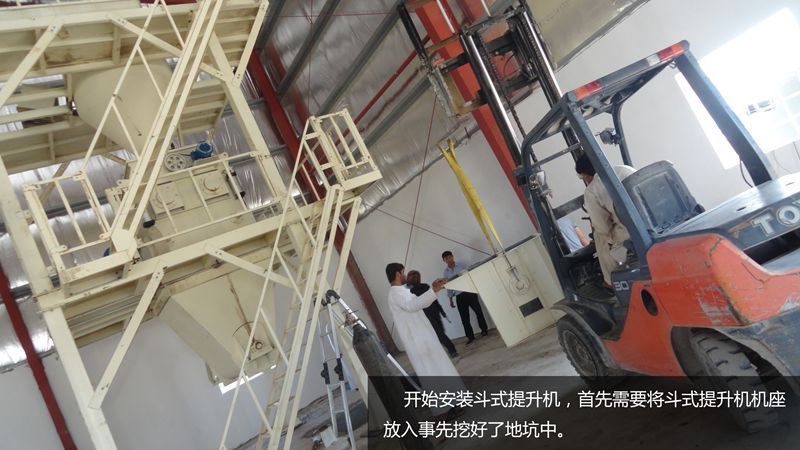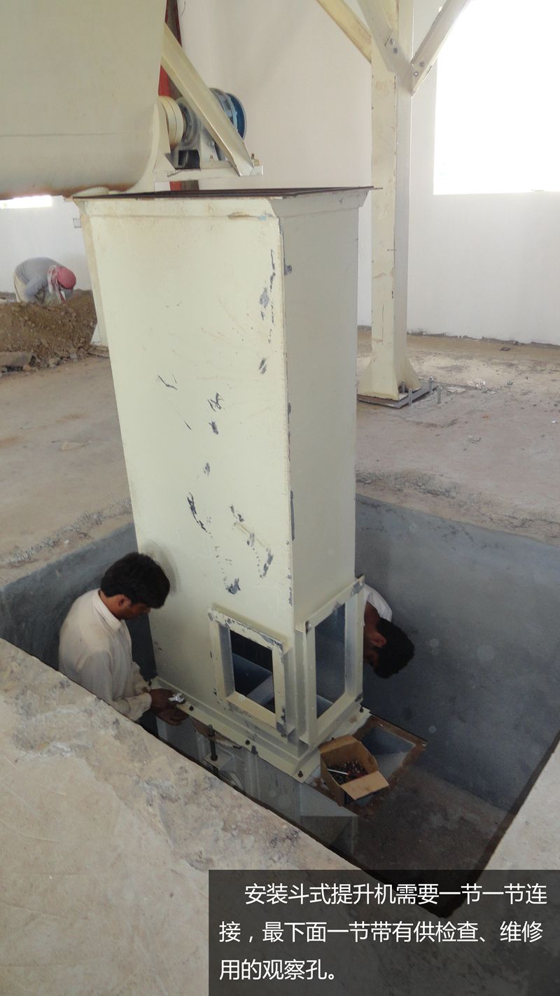開始安裝斗式提升機,首先需要將斗式提升機機座放入事先挖好了地坑中。