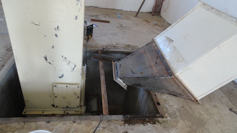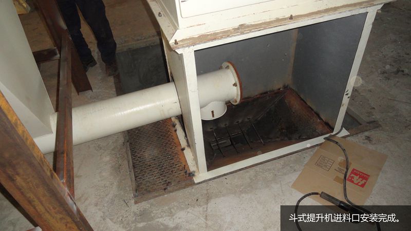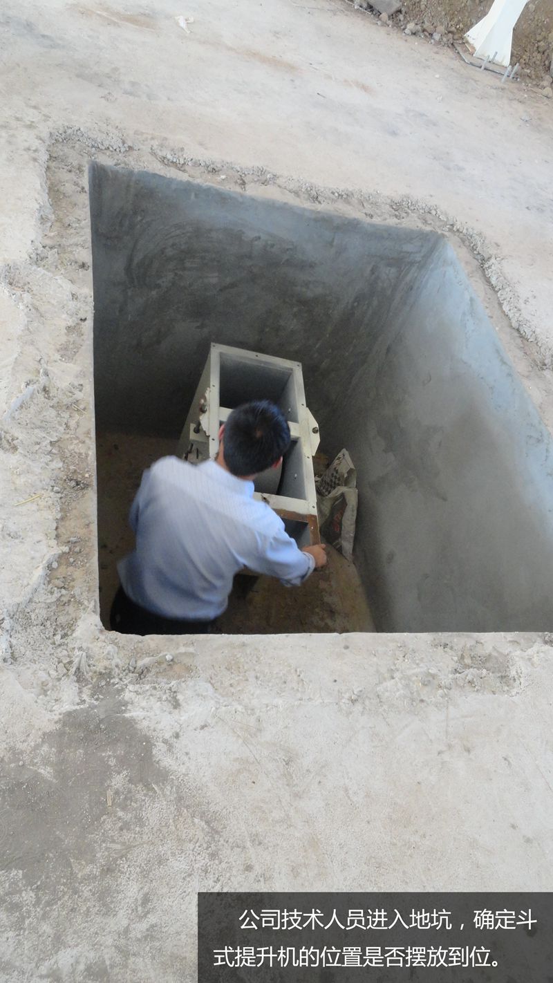 公司技術人員進入地坑,確定斗式提升機的位置是否擺放到位。