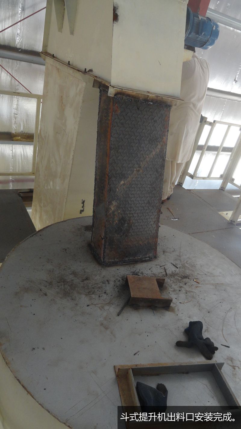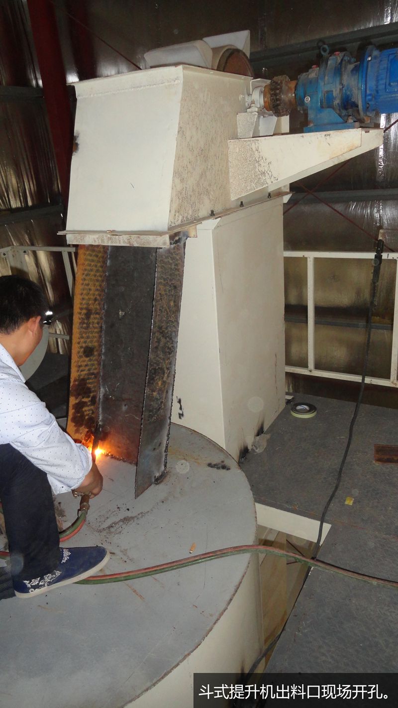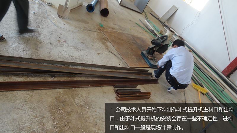 公司技術人員開始下料制作斗式提升機進料口和出料口,由于斗式提升機的安裝會存在一些不確定性,進料口和出料口一般是現場計算制作。