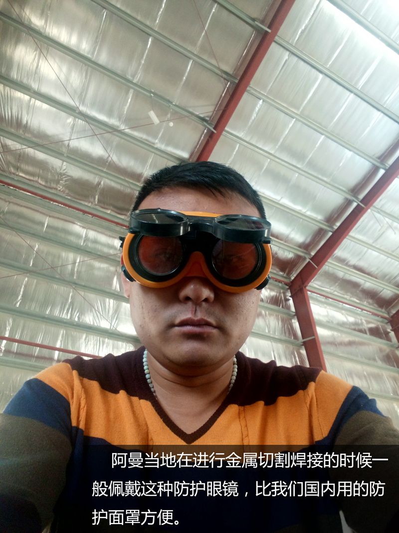 阿曼當地在進行金屬切割焊接的時候一般佩戴這種防護眼鏡,比我們國內用的防護面罩方便。
