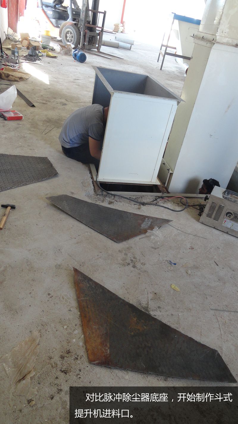 對比脈沖除塵器底座,開始制作斗式提升機進料口。