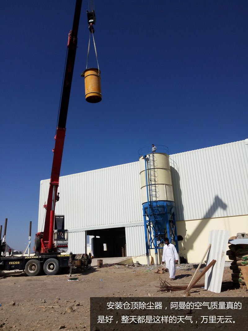 安裝倉頂除塵器,阿曼的空氣質量真的是好,整天都是這樣的天氣,萬里無云。