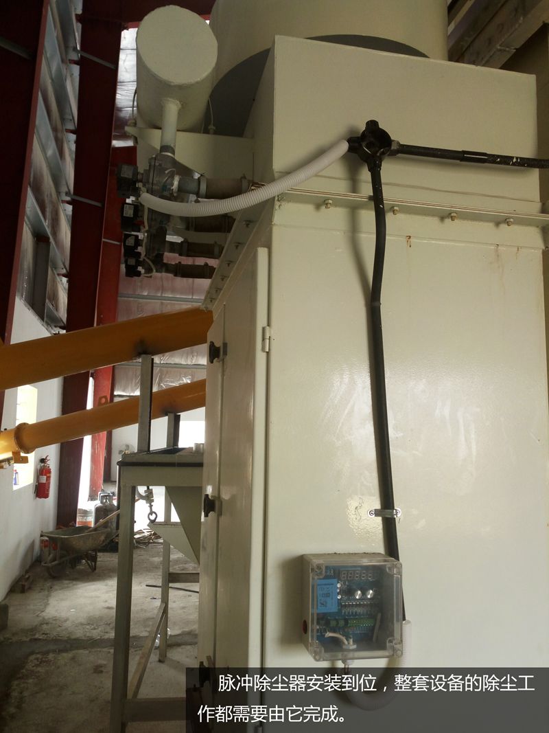 脈沖除塵器安裝到位,整套設備的除塵都需要由它完成。