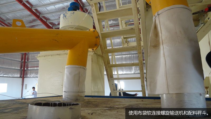 使用布袋軟連接螺旋輸送機和配料秤斗。