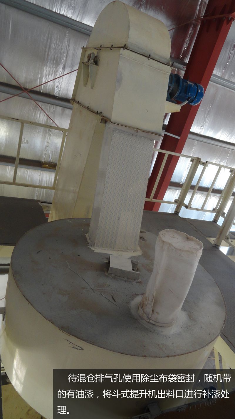 待混倉排氣孔使用除塵布袋密封,隨機帶的有油漆,將斗式提升機出料口進行補漆處理。